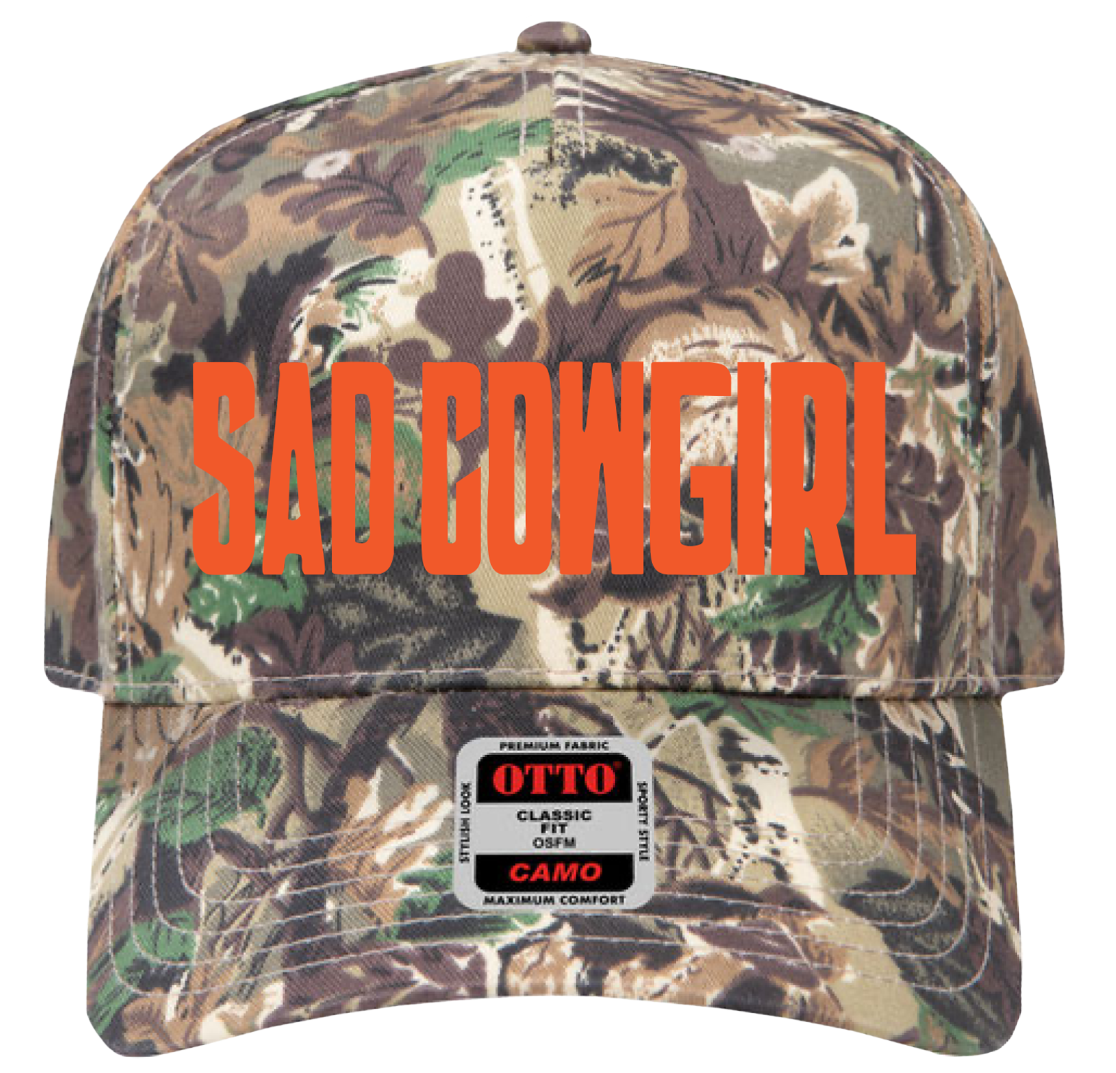 "Sad Cowgirl" on front / Dexter And The Moonrocks on back on a Otto Camo Hat